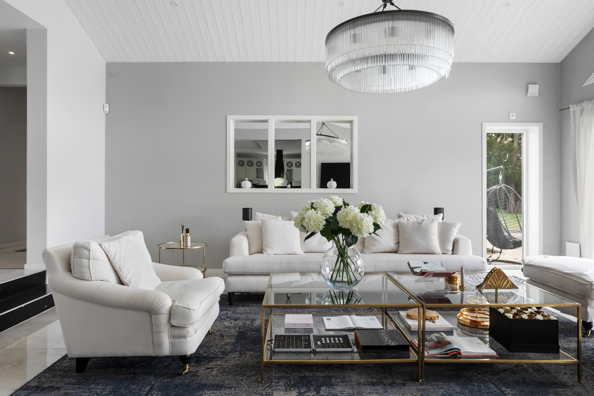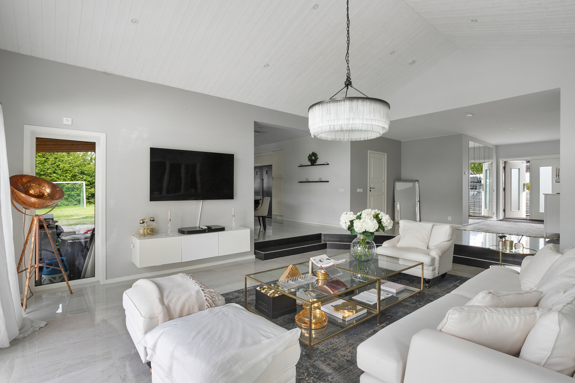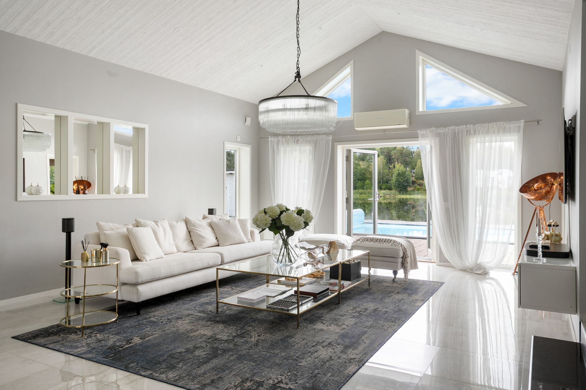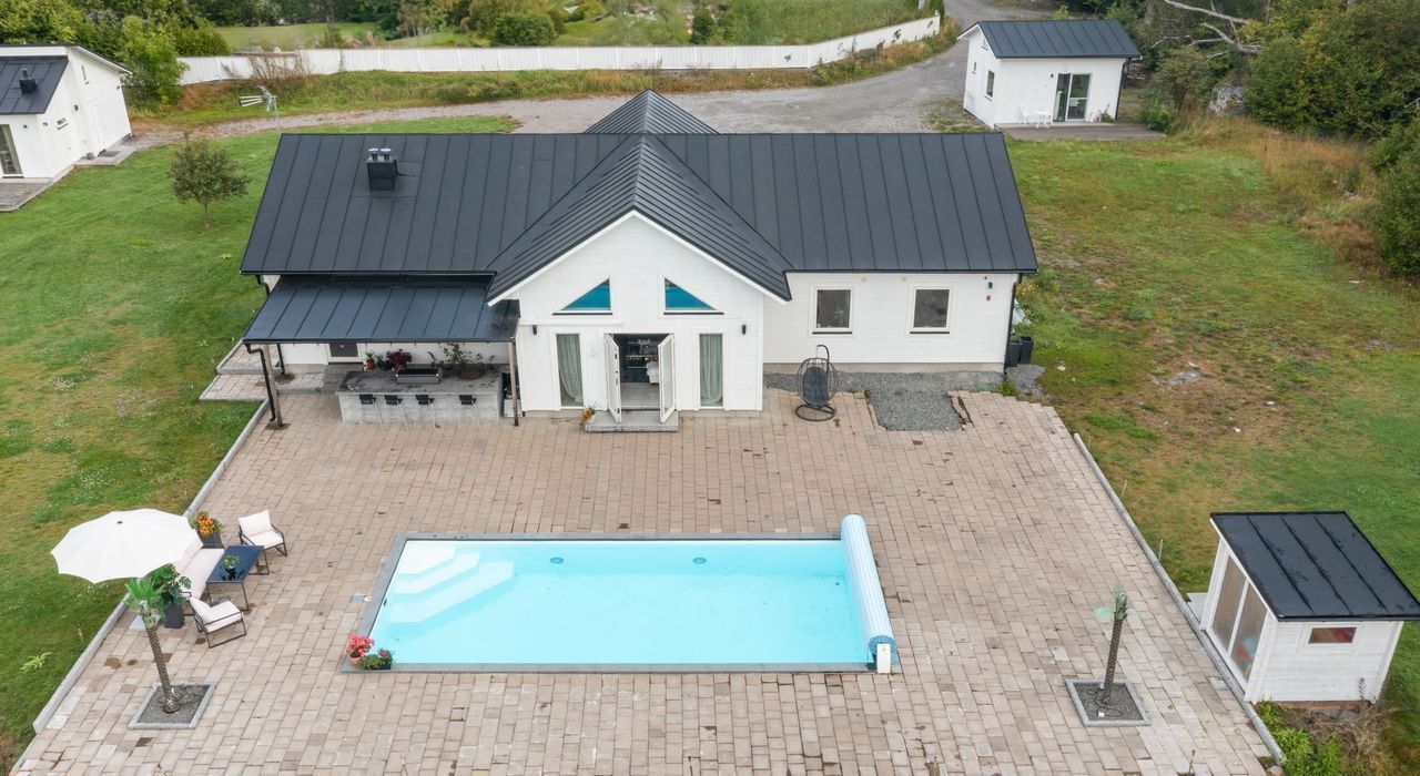 HALL Välkomnande möblerbar hall som öppnar upp mot vardagsrum och kök. Det första man ser när man öppnar dörren är utsikten över pool och vattnet nedanför. VARDAGSRUM Stort trevlig vardagsrum med en härlig rymd och stora fönster där solen flödar in. Från vardagsrummet kommer man ut till poolen och den stenlagda uteplatsen. KÖK Köket ligger i delvis öppen planlösning mot vardagsrummet och här finns utrymme för många middagsgäster. I köket finns en köksö och gott om skåp och lådor för förvaring. Utrustning i köket:stor kyl/frys, diskmaskin, induktionshäll, fläkt, ugn samt mikrovågsugn. Även köket har utgång till det underbara poolområdet där även bastun och spabadet finns. SOVRUM Huset master bedroom ligger med avskilt läge från husets andra sovrum och har ett eget fint badrum med wc, handfat och dusch. I sovrummet finns en garderobsvägg. De andra tre sovrummen ligger till huset andra del varav två av sovrummen har fin utsikt mot poolområde och vattnet. BADRUM Underbart badrum med spakänsla, här finns både badkar och dusch och dubbla handfat. Ett badrum som mer liknar ett sällskapsrum. TVÄTTSTUGA Från köket kommer man till tvättstugan som har en grovingång utifrån. Här finns gott om avlastningsyta genom lång bänkskiva, Tvättmaskin och torktumlare från Cylinda. Klinkergolv. ATTEFALLSHUS Modernt med välutrustat kök, badrum och loft. HUS 60 KVM Yteffektivt hus med två sovrum, vardagsrum kök och badrum. Både Attefallshuset och det större huset ligger med avskilt ostört läge från huvudbyggnaden och är välutrustade med både diskmaskin och tvättmaskin. Ritningar och konstuktionsritningar finns under dokument.