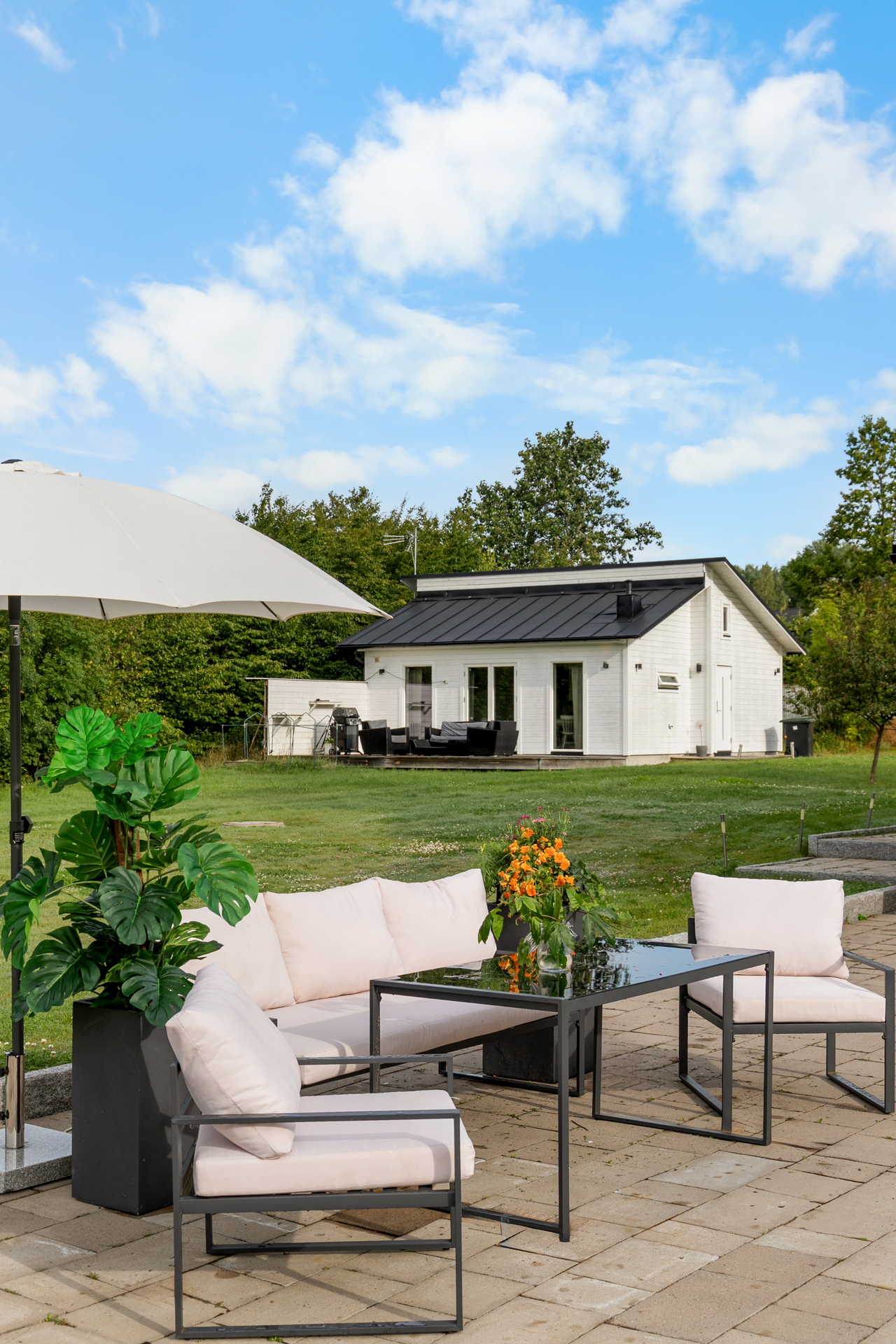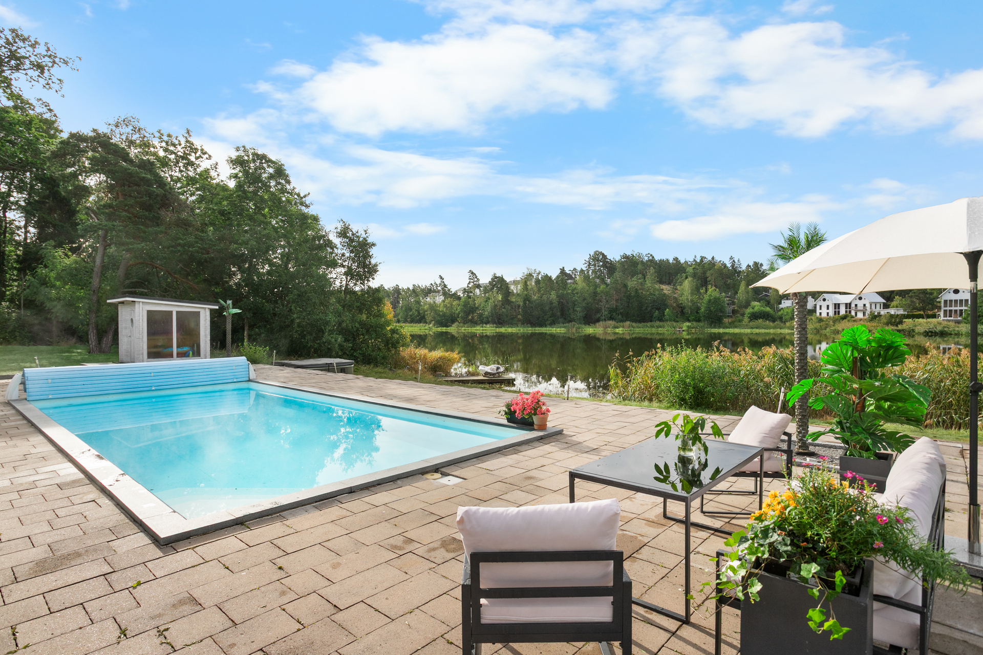 Stor trevlig sjötomt med insynsskyddat soligt läge på lugn återvändsgata. Fastigheten har tre hus om 200+60+20 kvm samt pool, spabad och bastu.. Huvudbyggnaden är uppförd 2015 och har öppen social planlösning, fyra sovrum och två badrum. De två andra husen är 60 kvm och det andra är 20kvm, perfekt för den som vill hyra ut, har äldre barn alternativt önskar ett generationsboende. De två andra husen ligger med avskilt läge från huvudbyggnaden. Nära busshållplats där det går flera busslinjer in till stan. Trevligt område i skärgården med vacker natur, nära till skolor och förskolor, restauranger och affärer. För den hästintresserade finns många stall i närheten. Om man önskar privatvisning går det givetvis bra.